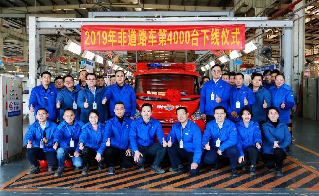 12月27日,在專用車廠總裝車間主裝配線舉行2019年非道路車第4000臺下線儀式,產(chǎn)、供、銷團(tuán)隊(duì)共同見證這個(gè)激動(dòng)人心的時(shí)刻。