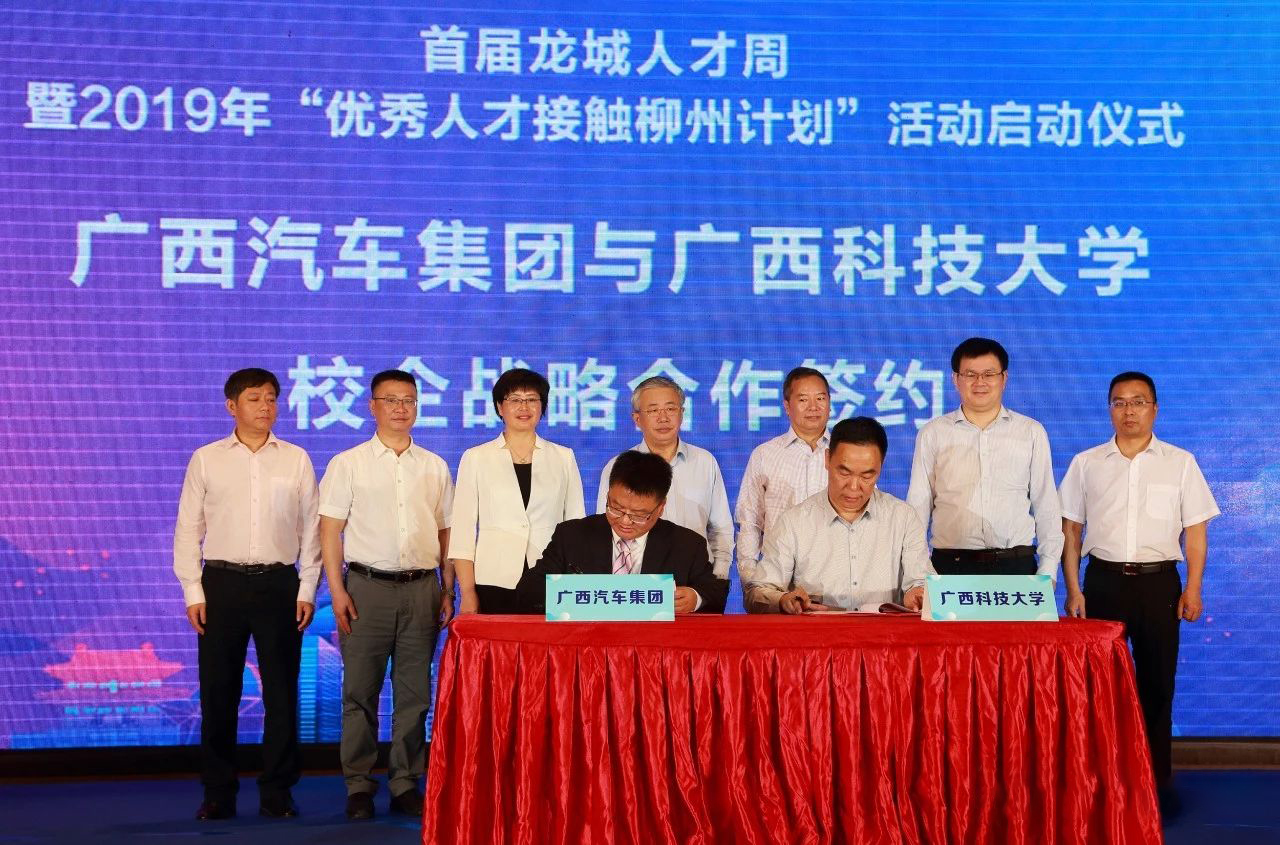 4月10日,首屆龍城人才周暨2019年“優(yōu)秀人才接觸柳州”活動(dòng)在柳州舉行啟動(dòng)儀式。在啟動(dòng)會(huì)上廣西汽車集團(tuán)獲得了博士后科研工作站授牌、與武漢理工大學(xué)簽訂汽車人才培訓(xùn)培養(yǎng)合作框架協(xié)議以及與廣西科技大學(xué)簽訂戰(zhàn)略合作框架協(xié)議。