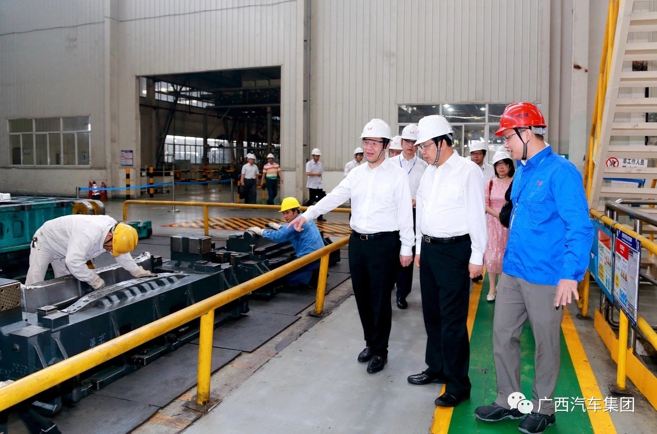 5月3日上午,自治區(qū)副主席、九三學社廣西區(qū)委主任委員李彬帶隊深入公司沖焊件廠調研,集團總裁袁智軍、總裁助理韋明鳳陪同參加。