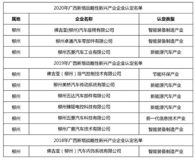 戰(zhàn)略性新興產業(yè)是以重大技術突破和重大發(fā)展需求為基礎,對經濟社會全局和長遠發(fā)展具有重大引領帶動作用,包括:新一代信息技術產業(yè)、智能裝備制造產業(yè)、新材料產業(yè)、新能源汽車產業(yè)等6大領域。至今,廣西汽車集團一共有10家所屬企業(yè)獲得該認定,其中智能裝備制造產業(yè)方向4家,新能源汽車產業(yè)方向4家,新一代信息技術產業(yè)方向1家,節(jié)能環(huán)保產業(yè)方向1家。